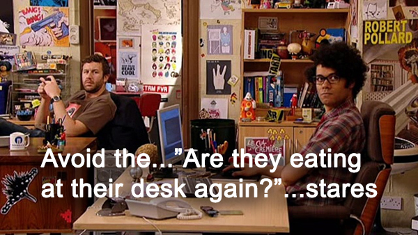- Eat in your staff dining area, not at your desk. Stay on the good side of your work colleagues and don’t eat smelly food at your desk.
