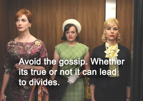 - Stay out of office gossip and negativity. If you hear a rumour then keep it to yourself. If someone is complaining about someone else, don’t get involved, especially when it involves your boss.