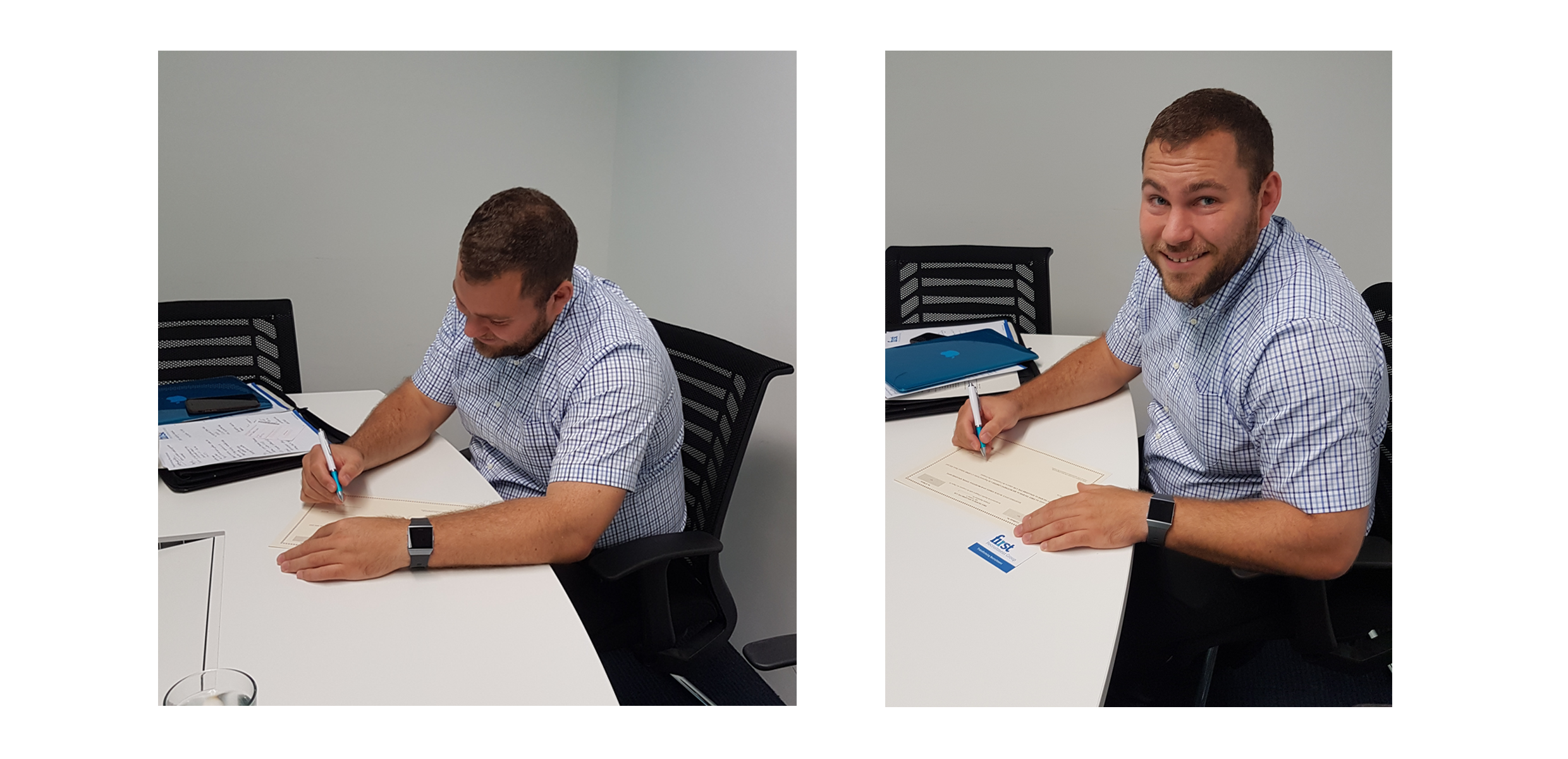 During their time over in 'The Lion City', Simon and David met up with clients and suppliers to understand their specific manpower needs, discuss how we can assist them going forward and come up with a productive plan. They then got to work on meeting those needs with the opening of the new office; here’s David signing the legalities: