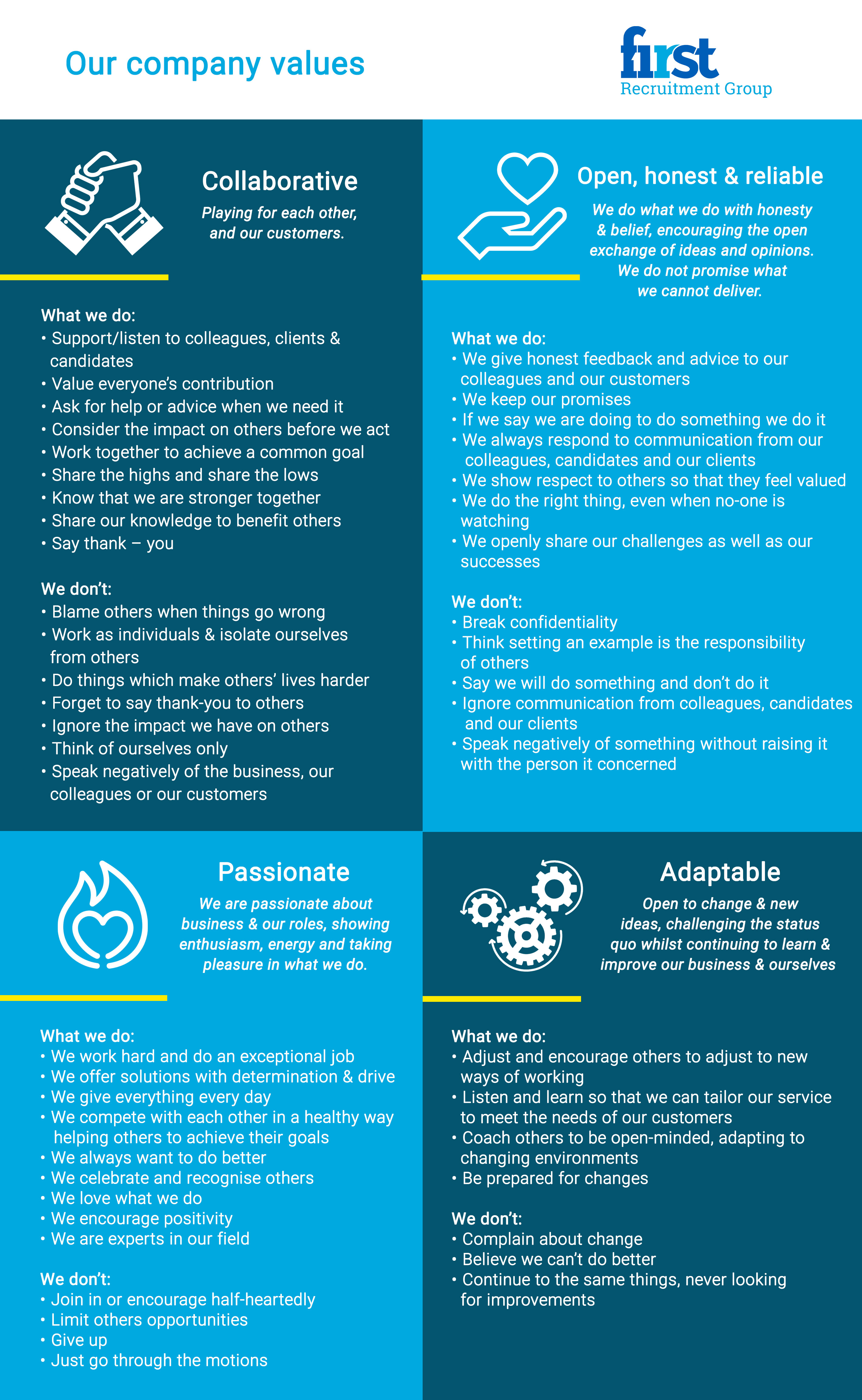 Following the Coronavirus pandemic, like many other businesses, our team have had to adapt and change the way we work to tailor to our candidates and clients needs. With this came the question of whether the new way we work was reflected in our vision, mission and values.