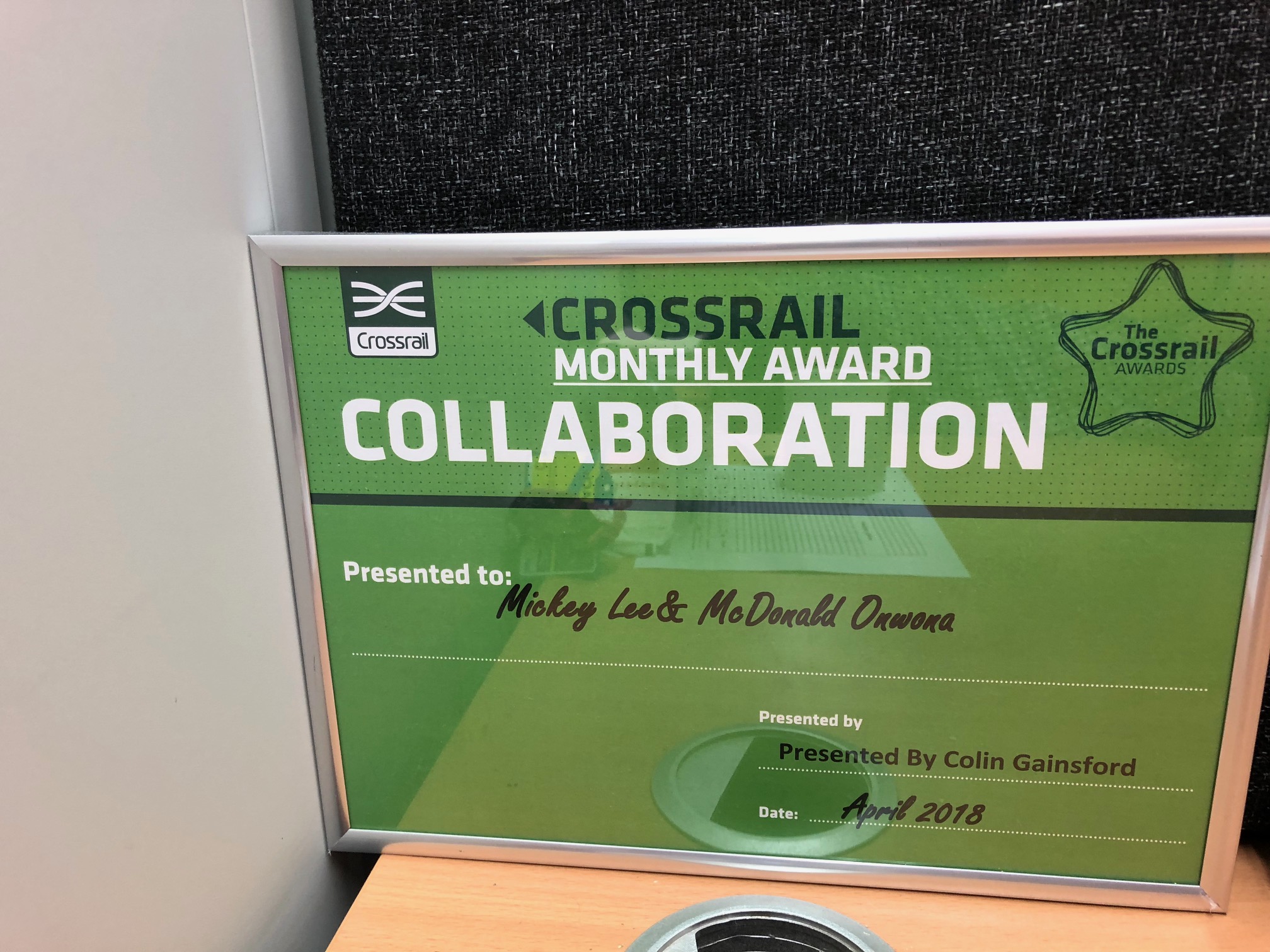 Following on from the joint collaboration award, Crossrail went on to congratulate Michael on his individual award, saying;